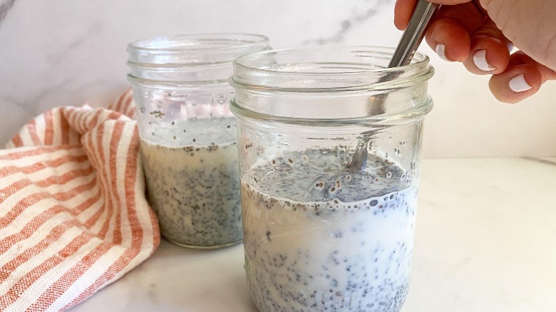 - Add the chia seeds and stir well.