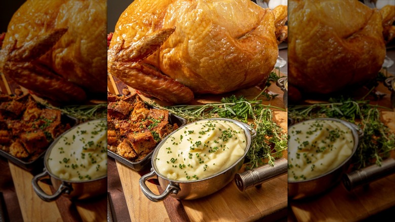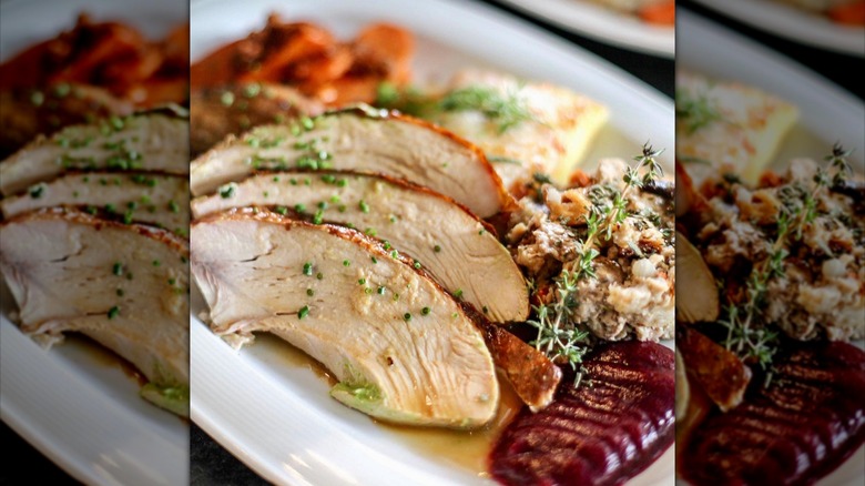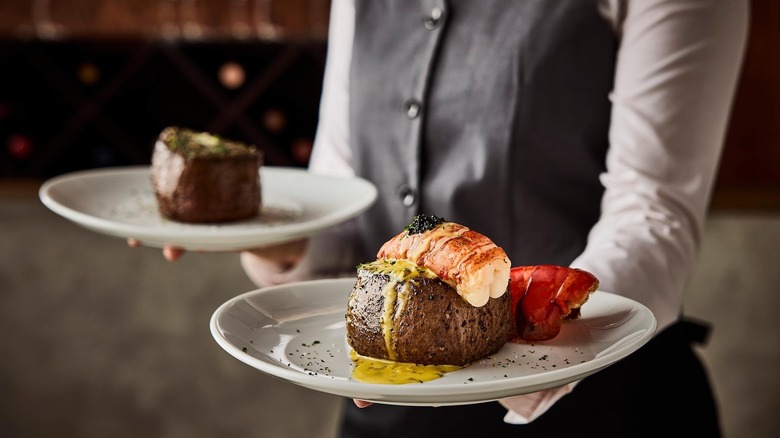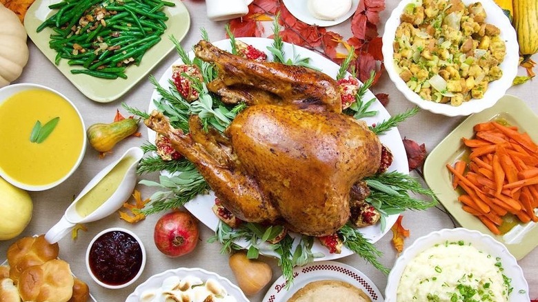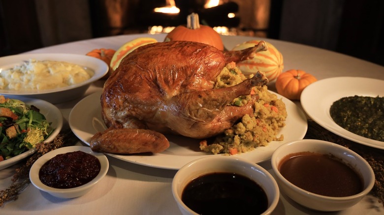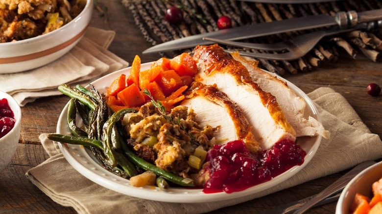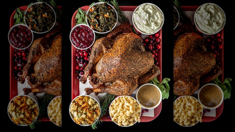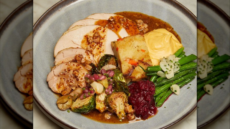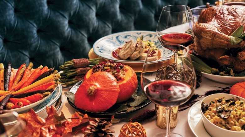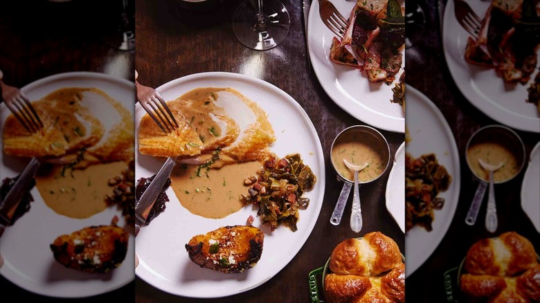 Though the Fleming's chain is known as a steakhouse and wine bar — a description that's literally in the restaurant's name — it is a surprisingly great place for children to eat. The restaurant maintains its family-friendly vibe by offering both a three-course adult Thanksgiving menu and a children's Thanksgiving menu. Kids can order a smaller turkey dish than adults, as well as delicious main course alternatives like mac and cheese, followed by an ice cream sundae for dessert. Adults can choose between a turkey breast and gravy, filet mignon, or ribeye steak.