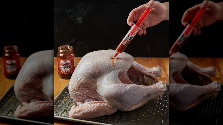 The brand explained in a press release sent to Tasting Table that the new injectable marinade works particularly well on pork and poultry — i.e. turkey, which just happens to be the star of most families' Thanksgiving feasts. If your family is a big fan of spice, this could be a time saver, as the product description notes it eliminates the time usually required for brines or marinades to infuse their flavor into your bird. (And that's not just talk: Barbecue expert Steven Raichlen explains on Barbecue Bible the process is one of the quickest ways to add flavor and moisture to meat.)