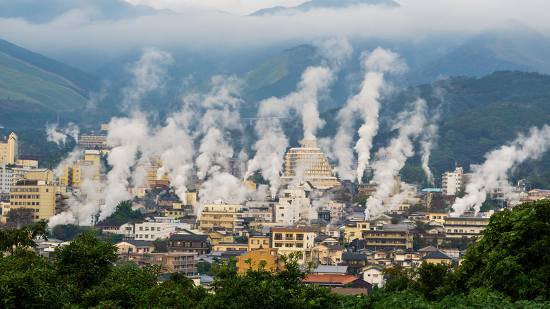 Be honest, if you had a geothermal hot spring in your neighborhood and someone had manufactured an oven that trapped the rising steam, you'd use it to cook your food, wouldn't you? If so, you'd be joining a long lineage across multiple cultures of those who have cooked with the natural resources their home nations have graced them with. In Iceland, they bake rye bread in the heated sands of hot springs. In Japan, though, they steam their food in hell (via Atlas Obscura).
