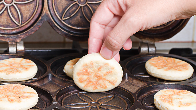 Long gone are the clay pots and open hearth used to make tigelle. Nowadays, the bread is made in iron or aluminum presses, which like the old clay molds, are often decorated with a symbol, such as a flower, so the design is pressed into the bread as it bakes, according to National Geographic. A recipe for tigelle from Silvio Cicchi calls for flour, cold water, milk, lard (which can be replaced with extra virgin olive oil), yeast, and salt. The lard and milk are used in order to keep the tigelle soft for days after it has been baked. However, American chef Nathan Anda prefers to use olive oil, which he said gave his tigelle the right texture for the sandwiches he wished to make, which included prosciutto and other toppings.