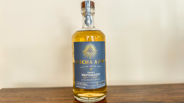 Unlike many of the celebrity spirits on this list, the celebrity Flecha Azul can now claim as one of its principal investors didn't start with the brand. Flecha Azul was launched in 2020 by co-founders Abraham Ancer, currently ranked the No. 1 Mexican golfer in the world, and Aron Marquez, CEO of Wildcat Oil Tools, while Mark Wahlberg joined the team in 2022 to support the brand's growth. In addition to having Wahlberg on board, Flecha Azul can flex another impressive claim, being one of the few Mexican-owned and operated tequila brands worldwide. The Flecha Azul portfolio has five varietals: blanco, reposado, anejo, cristalino, and extra añejo, all made from 100% Blue Weber agave.