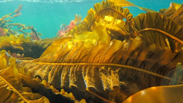 Alaria is a brown algae that is also known as winged kelp and Atlantic wakame, or dabberlocks and badderlocks in the U.K. (via Seaweed Solutions). It is found in cold waters all over the world in Europe, North America, and Asia. The taste is described as salty with a bit of nuttiness according to Maine Coast Sea Vegetables.