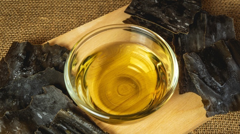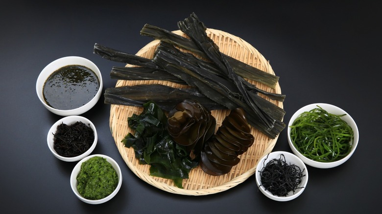 A member of the kelp family, kombu comes mainly from Hokkaido, Japan and it is known as "dasima" in Korean and "haidai" in China (via MasterClass). It has a mushroom-like, briny taste that is most famously used in dashi, the traditional Japanese stock that is the base for soups such as miso soup, noodle bowls such as ramen, and hot pots such as shabu shabu.
