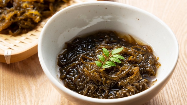 Mozuku has the slippery and slimy texture that Japanese people love in their foods such as natto, which is fermented soy beans, and yamaimo, a Japanese mountain yam (via The Japan Times). That is why they like to eat raw mozuku dressed in sweet vinegar, or double the sliminess by eating it with natto. For those who are not used to such textures, it may be easier to enjoy mozuku in soups or fried in the form of tempura.