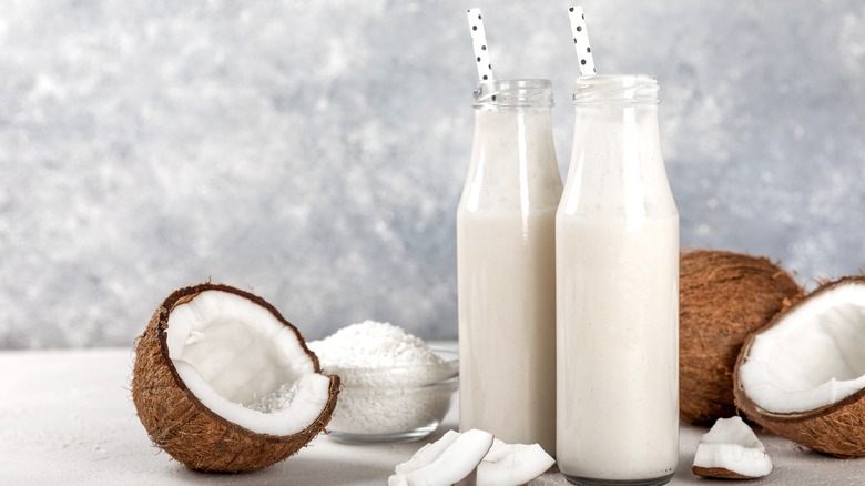 Per Medical News Today, coconut water is touted as a natural source of electrolytes like potassium — containing more than a banana. It also offers calcium and magnesium as well as antioxidants. According to Verywell Fit, coconut milk is not a significant source of vitamins and minerals because of the small quantities it's consumed in, but it does contain lauric acid, which has been speculated to improve cholesterol.
