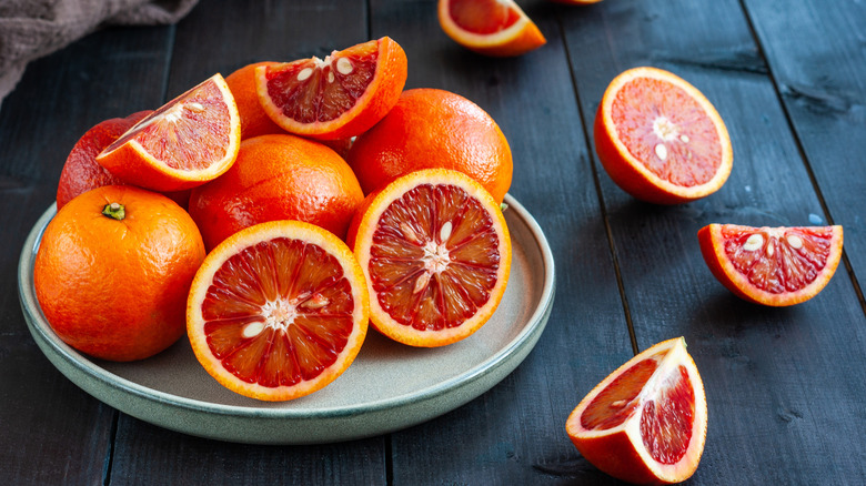 Luckily, apple cider and bourbon cocktails aren't the only cold-weathered sippers in a seasoned mixologist's repertoire. Chimayó is a spiced apple cider cocktail made not with whiskey but tequila. On that note, tequila fans, keep rejoicing. Today, we're talking about the good old margarita, made with tequila, lime juice, and triple sec. According to VinePair, triple sec (aka curaçao) is an orange liqueur that many mixologists regard as a foundational ingredient to any margarita. Alton Brown's controversial margarita recipe omitted triple sec, and fans were, to say the least, not happy. Unlike standard orange juice, triple sec lends a bitter, slightly sweet orange flavor to a margarita — a quality comparable to the blood orange fruit, which is part of the reason why blood orange will transform your winter margarita. Here's how.