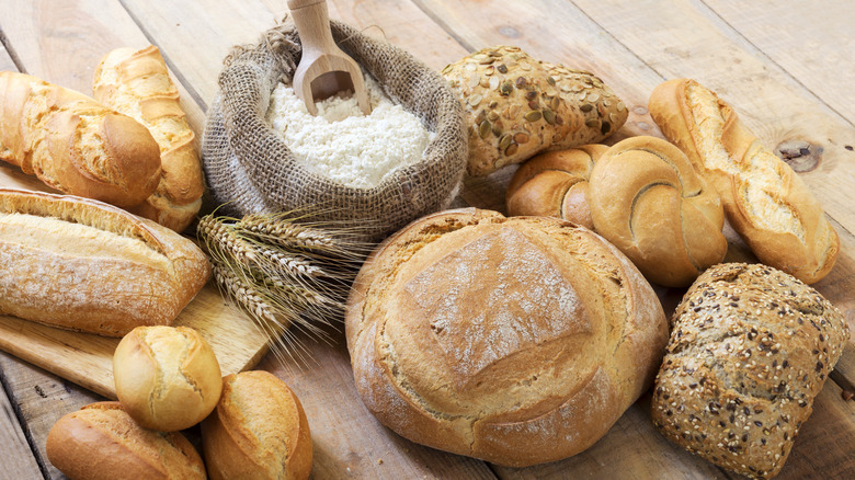 Webstaurant Store describes bread flour as having a high protein (12% and 14%) that has more gluten in it. This will result in that light chewy crumb we all love and crave. Bread flour is ideal to use when making high-quality dough for leavened bread, but bread flour is almost always more expensive than all-purpose, and if you're in a pinch, you may need to pick a different mix even if it means sacrificing some of that gluten elasticity (via Bob's Red Mill).