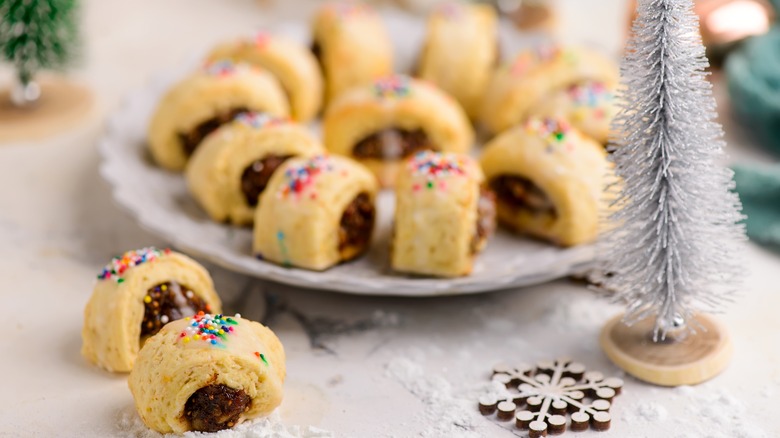 Move over, Fig Newtons, there's a new figgy biscuit in town! Cuccidati are Italian fig-stuffed cookies that often grace tables around the holiday season. Figs are an ideal fruit for a sandwich cookie, as they become naturally chewy and jammy when they're cooked. The history of the cuccidati tells a story as old as Italian cuisine, itself, according to the Italian Sons and Daughters of America, from the Greeks introducing grapes to Sicily, to the Arab trade routes bringing up the figs and dates from the Middle East. These cookies also benefit from a splash of holiday spirits (typically Marsala wine), nuts, and spices in the filling before they're iced with a simple sugar glaze and topped with festive nonpareils.