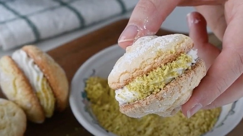 Can a cannoli be considered a sandwich cookie? It might suffer the same identity crisis as a burrito or a deli wrap, but they're too delicious to go unmentioned. Crunchy, fried shells are piped full of sweetened whipped ricotta cheese. Their suggestive shape isn't coincidental, according to the BBC, and harkens back to ancient traditions of celebrating both godly and mortal eroticism in baking. The ends are then dipped in chopped pistachio nuts, chocolate chips, or other fun garnish. They are staples of Italian bakeries where you can often buy them by the dozen to share (or not)!