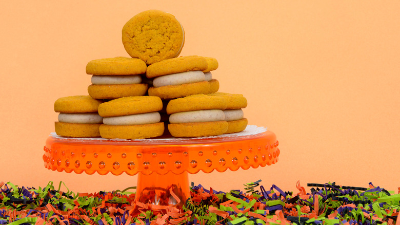 It seems to start sooner and sooner every year: pumpkin spice season. The mélange of spices find their way into everything from coffee to breakfast cereal to Oreos. Whether you're a fan of the spice or couldn't care less, it's hard to resist a soft-baked pumpkin cookie with a cinnamon cream cheese filling. Pumpkin has a natural sweetness all its own, so the filling can strike a nice balance without being too cloying.