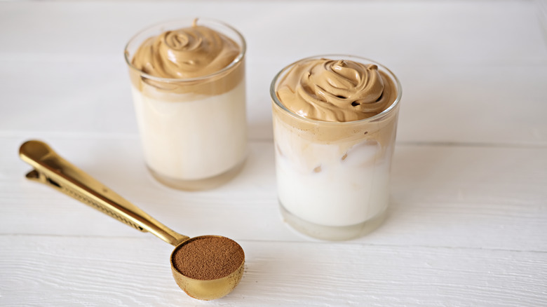 Starbucks cold foam beverages are all the rage, but if you have aversion to spending a few extra bucks each time you make a Starbucks run, you might want to consider learning how to make your own cold foam at home. The vanilla sweet cold foam at Starbucks is a relatively simple drink made with milk and vanilla sugar syrup (via Starbucks) — a recipe easy enough to make at home with your milk frother. Fresh Coffee House notes that Starbucks opts to use non-fat milk for its cold foam because it holds up better than other milk products.