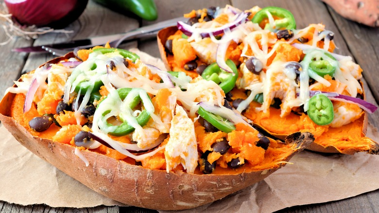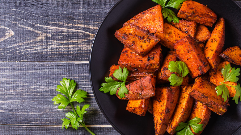 Recipes abound for sweet potatoes that involve roasting, mashing, grilling, air frying, and microwaving them. Betty Crocker says that no matter the method you choose, you can't go wrong when preparing a sweet potato. One of the most classic sweet potato dishes that grace dining room tables on the holidays, is candied sweet potatoes, which includes brown sugar, butter, heavy cream, cinnamon, and nutmeg, (and the optional marshmallows), per a Southern Living recipe.