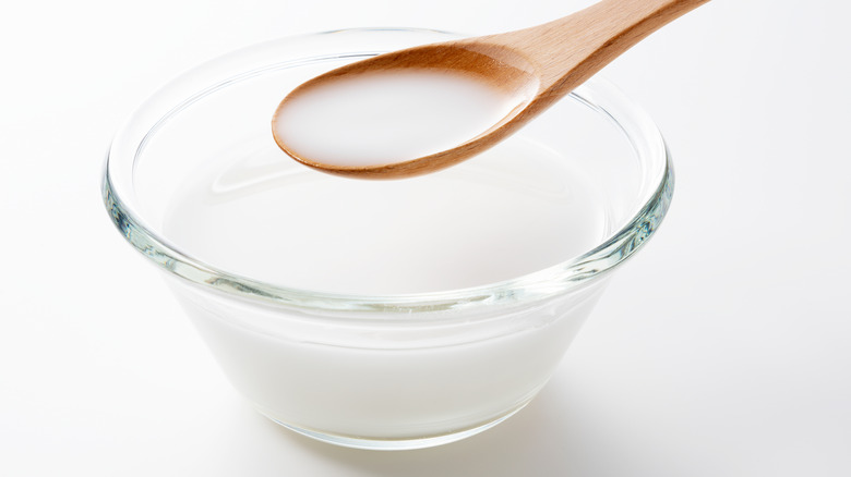 Made from the cassava root, tapioca doesn't really taste like anything, but as an effective thickener, it acts as a blank canvas for other flavors. Just as with other powdery thickeners, it should be mixed with water and made into a slurry before it's added to your soup. Once tapioca is heated and hydrated, it lends a silky texture and shiny, translucent appearance — both of which are somewhat reminiscent of using cornstarch. Unlike cornstarch, tapioca can become stringy when it nears the boiling point of water. Tapioca is a great gluten-free alternative to flour and can be used as a one-for-one swap.