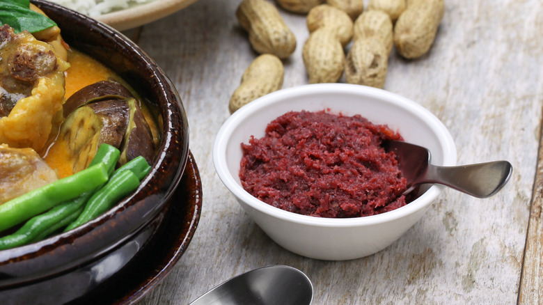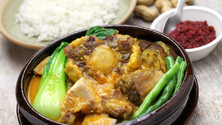 Manila-based chef Mikel Zaguirre tells Tatler Asia that he likes his bagoong "stewed for hours" before he cooks it into fried rice, snacks on unripe green mango with the fermented shrimp on the side, or adds it to the classic Filipino dish kare kare – a stew made with ox tail, pork, goat, or chicken, in a "thick, savory peanut sauce," via Taste Atlas. Chef Aaron Isip prefers his bagoong mixed with vinegar and served as a dipping sauce for grilled pork belly, while Stephan Duhesme says a top-quality bagoong can be enjoyed with rice and eggs.