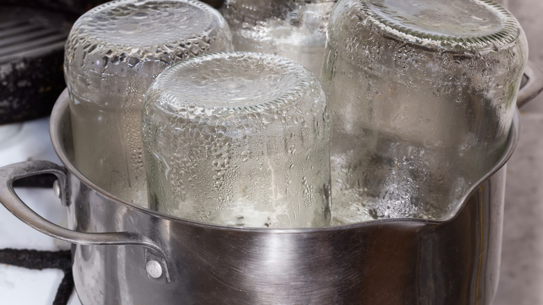 Before cost analysis, let's cover what supplies canning requires. For home canning, you don't need cans — you need jars, says Better Homes & Gardens. There are different options available, the main difference being size. Canning jars typically come in 4-ounce, ½-pint, 1-pint, and 1-quart volumes. Since you're going to be using heat, canning jars must be tempered. Tempered glass is crafted through a special process. It's four times stronger than regular glass, and, if it does break, it doesn't shatter into dangerous shards (via Scientific American). Besides being made of tempered glass, the jars must have mouths with a threaded finish. This finish lets the lid seal tightly, preventing your food from spoiling. Jars come in regular- and wide-mouth options. The former is usually used for sauces and jams, while the latter is used for anything that comes in larger pieces.