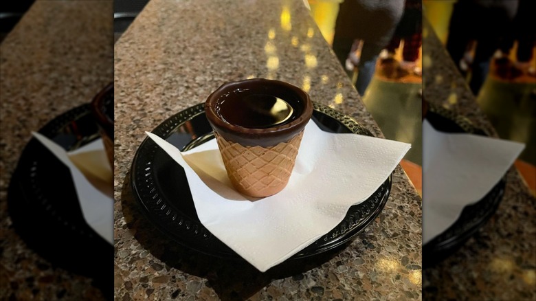Disney's Grand Californian Hotel & Spa, which is accessible directly from California Adventure and Downtown Disney also gets in on the holiday celebrations. In addition to a large seasonal dessert menu, the hotel serves hot apple cider, which can be mixed with shots of Bailey's Irish Cream, Captain Morgan, Grand Marnier, or RumChata, and Waffle Shots, which are waffle cone shot glasses filled with your choice of Bailey's Irish Cream, Captain Morgan, Grand Marnier, Rumchata, Amaretto, Butterscotch Schnapps, Rumple Minze, Crown Royal Apple, Screwball whiskey, Fireball whiskey, Louis the 13th cognac, or milk (per Disney Parks Blog).