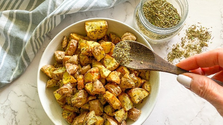 Hopefully, you have your spices organized in your cabinet because you will be using nine different spices in this delicious spice blend. You will need dried herbs, including basil, fennel seed, marjoram, mint, oregano, rosemary, savory, tarragon, and thyme. The only spice that may be unfamiliar to some is savory. It adds a slightly peppery taste that complements the other herbs nicely.