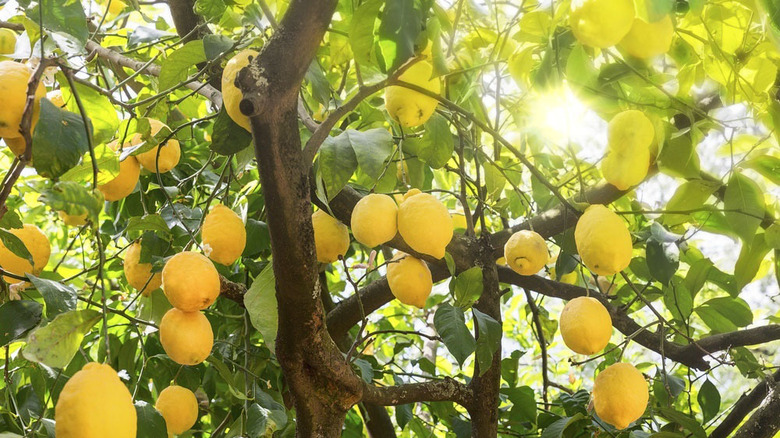 Sicily is a sun-soaked island just off of the Calabrian coast, the toe-tip of the boot, in the Tyrrhenian Sea. It is a cultural and culinary melting pot due to its history as an outpost for Greeks, Phoenicians, Africans, Ottomans, Vandals, Arabs, Romans, and Normans, throughout its long and storied history (via Eyewitness Italy). Sicily has balmy Mediterranean weather punctuated by frequent droughts and the occasional rumblings of volcanic Mt. Etna. The island has incredibly rich and fertile volcanic soils perfect for growing grapevines, nut and fruit trees. The lemons from Sicily are rich in flavinoids and color, says TasteAtlas, with moderate acidity.