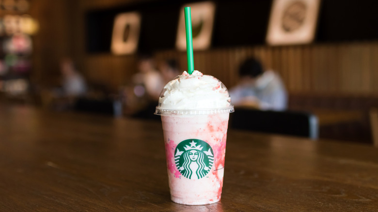 Japan has its variation of the merry strawberry beverage, enhancing it with strawberry sauce, strawberry bits atop the whipped cream, and a base composed of shortbread and blended sponge cake. The drink can be ordered hot or as a frappuccino and bears some resemblance in its taste to a classic strawberry shortcake (via Starbucks Stories Asia).