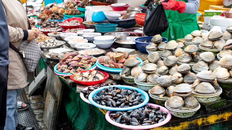 According to Eater, the market is the largest fish market in Korea and the second largest in Asia. All of the sea's bounty is on display in the many stalls spread throughout the indoor and outdoor facility. Expat Guide Korea points out that the freshest catch is brought into the market daily — and with a wide variety of fresh and dried fish, crab, lobster, and shrimp, you won't need to be a seafood expert to enjoy the market's offerings.