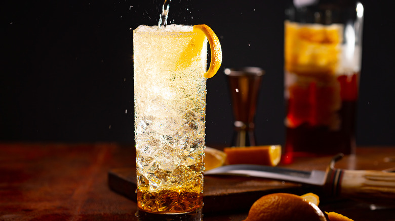 The same goes for the whisky highball. Adding a sprig of mint to the cocktail will bring an air of freshness (via The Spectator). As the whisky is somewhat diluted by the inclusion of a carbonated beverage, mint, along with a twist of lemon zest, brings subtle layers of flavor that help elevate the simple ingredients of the highball. You could also take the minted highball to the extreme by following the recipe for a mint julep highball, per Difford's Guide. Essentially, you take the normal ingredients of a mint julep — bourbon, syrup, and LOTS of mint — and add to them some carbonated beverage, and you have yourself a unique spin on a classic cocktail. So, the next time you're mixing a highball, throw in a sprig of mint to give it that "ahhh" factor.