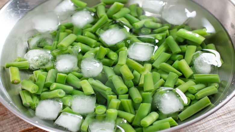 So, it's time to prep your green bean abundance for its icy slumber (they can last up to eight months in the freezer if properly prepared, notes Cookaholic Wife). It all starts with choosing the freshest beans, preferably soon after they're picked. Next, trim both edges and rinse the beans thoroughly in cool running water, removing all dirt and stray strings, per Better Homes & Gardens. Then comes the most important part, the step you simply cannot skip: blanching the beans.