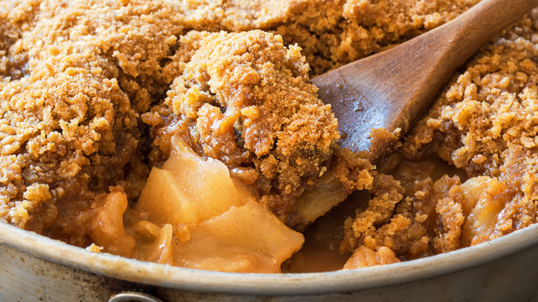 Rationed foods often come attached to negative associations due to the implied scarcity, whether from war or otherwise. There are, however, some wonderful foods still eaten today that have emerged as a result of rationing. Apple crumble, the equivalent of apple crisp in the U.S., is one such food. Crumble, which stems from rationing in the U.K. during WWII (via ifood.tv), was offered as an alternative to pie since it uses less butter and flour and takes less time to make, as there is no crust.