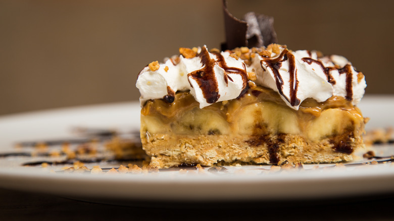 Unlike a Victoria sponge, banoffee pie is relatively new on the scene in the British desserts world, but that doesn't mean you should discredit it. Quite the contrary. According to The Independent, we owe restaurateur Nigel Mackenzie a load of gratitude for giving the people what they didn't know they wanted when he created the banana and toffee portmanteau in 1972.