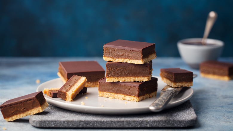 Think of this dessert as a bedazzled, tricked-out version of your favorite buttery, biscuit. It's a layered cookie that satisfies several sweet cravings at once with its butter-heavy shortbread base, sweet caramel center, and hardened chocolate top. Thankfully, you don't have to have piles of money to purchase or bake millionaire's shortbread — its name is likely a reference to the cookie's richness in flavor. Much like trifle, this too makes a perfect holiday or dinner party dessert, made a bit in advance to ease the pressure.
