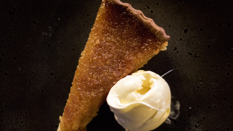 Though the true specifics of it origin seem to be slightly unknown or at least well buried, it is likely the dish was invented shortly after the creation of golden syrup in the late 1800s, as it is a key ingredient in the dish (via British Food: A History). The syrup and the tart date back to a time when there was no year-round access to fruits from around the globe; there was simply no choice but to use other ingredients when fruit was no longer in season. As noted in the "Whitby Gazette" in 1898, "Now that fruit is getting scarce, baked treacle tart comes in useful ..." (via Foods of England). This is not a last resort dish; however, it is most certainly a dessert rather than a teatime treat or snacking cake, due to its sweetness.
