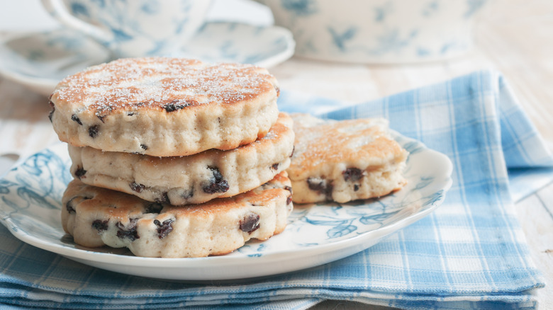 Visit any café in Wales and you'll likely come across Welsh cakes (aka Pice ar y maen), a subtlety sweet, slightly craggy and dense, butter or lard laden griddled pastry, dotted with currants and topped with a dusting of sugar. Welsh cakes are in a category of their own. They're similar in texture to a scone, slightly sweet with a hint of cinnamon and nutmeg, then cooked on a griddle like a pancake, rather than baked. This method of cooking is why they're also occasionally known as "griddle cakes" or even more infrequently "Welsh miner cakes."
