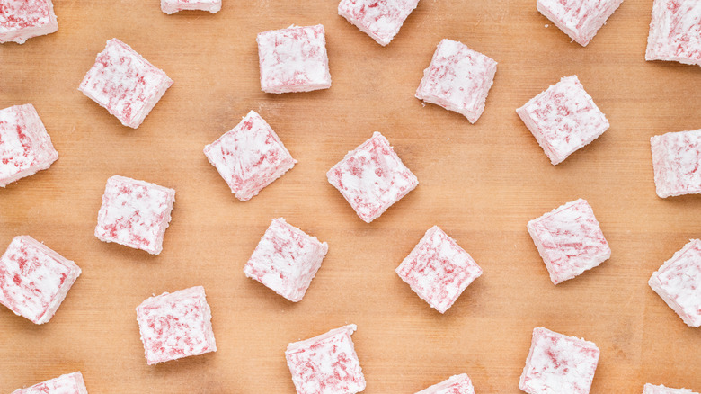 You will only need a few things to whip up this rose Turkish delight, and if you bake a lot — you may have some ingredients in your pantry already. All you need is cornstarch, water, caster sugar, lemon juice, gelatin powder, rosewater, red food coloring, and powdered sugar. "Rosewater has quite a distinct flavor so I wouldn't recommend subbing it here," Brookes notes. "In the U.K. you can find it in the baking section of most large supermarkets."