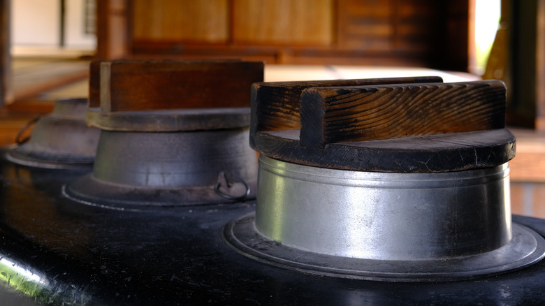 And while we might think of rice cookers as an indispensable part of many kitchens today, it wasn't too long ago when rice had to be cooked over an open flame on a traditional wood-burning stove, known in Japan as a kamado, per Open Edition. Once a fire was started, a pot known as a kama was filled with grains and water and then placed on top of the kamado to cook, with the taste of the rice ultimately depending on how hot the flames were.