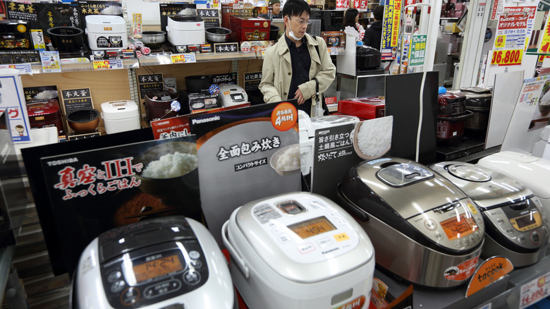 Advances in microprocessing and induction heating (IH) have also allowed rice cooker manufacturers in Japan to make machines that can cook rice with the look and taste of rice cooked in a traditional kama — which still remains the gold standard, per Open Edition. One model made by Toshiba offers a rice cooker that can generate higher levels of heat, making the resulting rice sweeter or chewier. Another model offers a pot coated with iron, stainless steel, and aluminum and comes with a cooking system that allows an owner to adjust the temperature and cooking time to produce a variety of textures. But to get your hands on these Rolls Royce of rice cookers, you can expect to pay at least several hundred dollars.