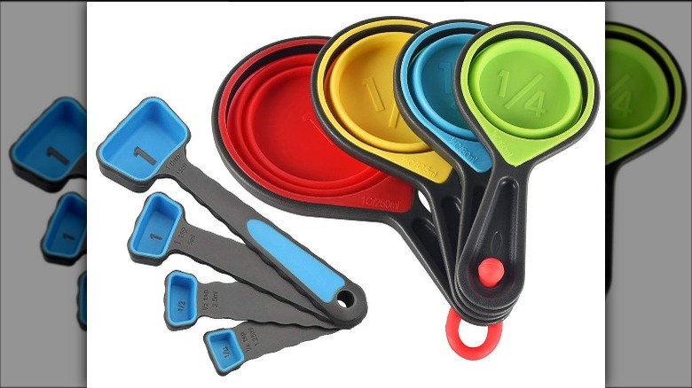Collapsible measuring cups and measuring spoons