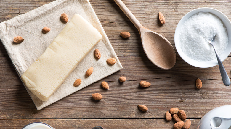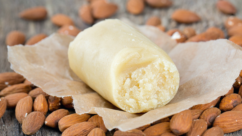 Well, yes, technically marzipan is a paste made of almonds. However, as Bon Appetit explains, the term "almond paste" specifically refers to a separate food. Like marzipan, almond paste is a sweetened paste made from ground almonds, often bound together with egg and sugar syrup. But despite their similarities, it's important to know the difference. Read on to learn what makes them unique.