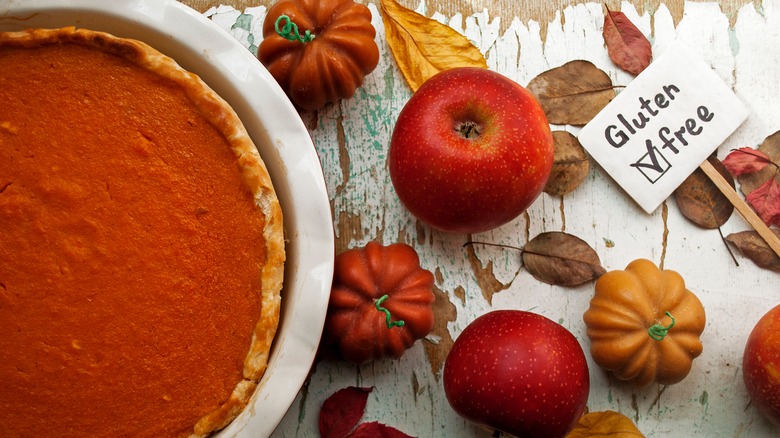From pumpkin and apple to pecan or shoofly — we love our pies. MasterClass explains that a pie can have a sweet or savory filling, but its pastry crust — either just on the bottom or enclosing all the goodness with a top and bottom crust — is the defining feature of a pie. And that flaky crust, usually a mixture of flour, butter, and a little water or even vodka, can present a problem for people who can't or choose not to consume gluten.