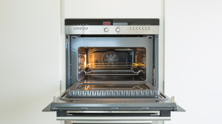 This last faux pas does not apply to all convection ovens, but it is still worth mentioning. Some convection ovens have a steam feature, and you are certainly missing out if you do not use it. Convection steam ovens will simultaneously brown your food through air circulation while using steam to lock in moisture (via Atherton Appliance). This feature is ideal because steam plays an important role in baking bread. First, steam helps aid the last stage of fermentation, called the "oven-spring." This occurs when the yeast in the bread dough releases one final round of gas that causes the loaf to rise in the oven. Once the water evaporates, the convection feature will trigger the Maillard reaction, which forms the brown crust.