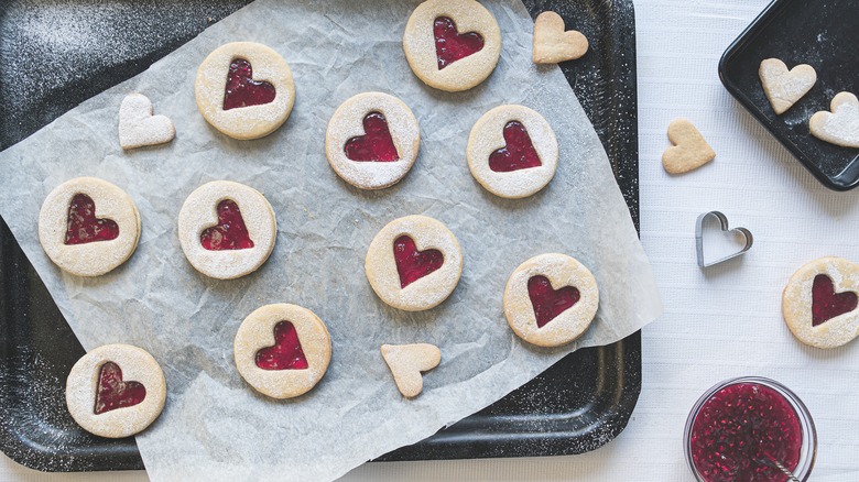 A little-known trick from experienced bakers is to place a tiny bit of your batter (whether that be cookie dough, meringue, or choux paste) on all four corners of the sheet tray, according to Chef Talk. When you secure the parchment to the batter, it will act as glue, and the paper will stay in place, says the site. Don't worry though: It's easy to remove the parchment afterward.