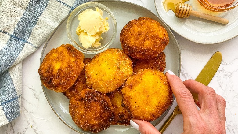 If you are a cornbread fan and want to try your hand at a version with a twist, read on to learn how to make old-fashioned hot water cornbread. Recipe developer Miriam Hahn brings us this recipe which she says is delicious and super easy to make. "The main difference," Hahn shares, "is this type of cornbread is shaped into patties and cooked on the stove instead of pouring the batter into a baking dish and cooking in the oven. The patties come out crispy on the outside and soft on the inside." You can serve the cornbread patties with butter and honey as a side dish, or use them to soak up sauces in a dish like this Texas red chili.