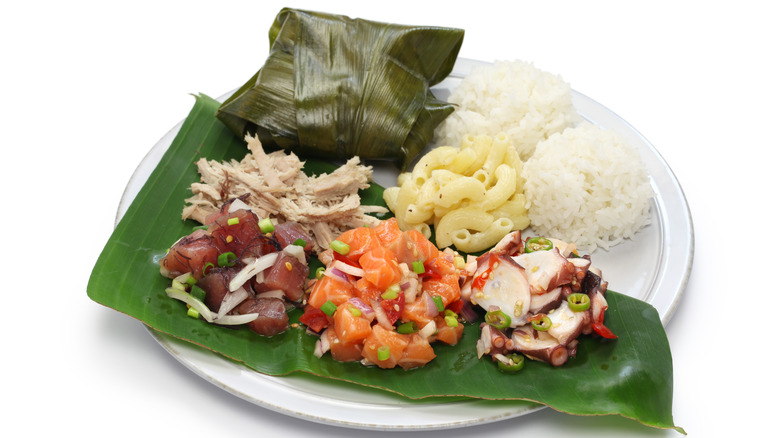 Native Hawaiian food, however, is more indigenous to the islands than local food. This includes foods like kalua pig, Pa'i'ai, kalo, and lomi lomi. Lomi lomi, which means "rub, rub" in Hawaiian, is a salted salmon side dish that has an important place in traditional luaus and in Hawaiian homes (via 'Ono Hawaiian Recipes).
