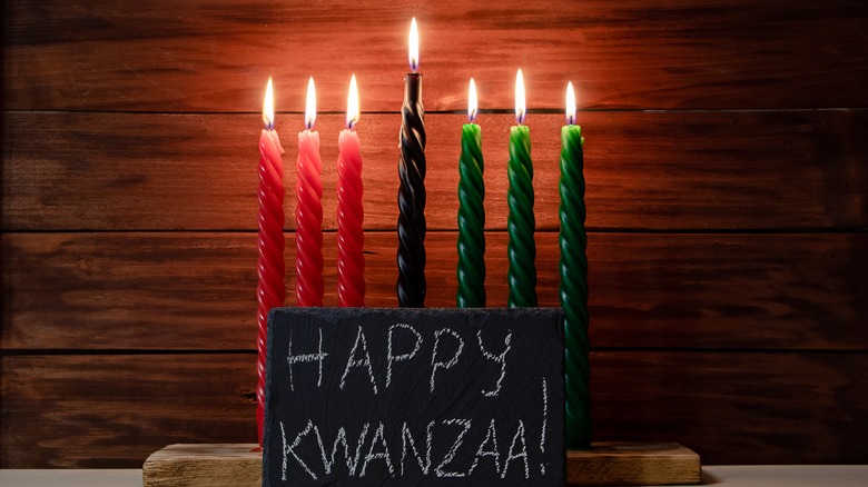Celebrated by millions of African-Americans every year, Kwanzaa is a holiday that honors history and heritage across the diaspora. Observed from December 26 through January 1, the Smithsonian National Museum of African Art explains that seven guiding principles — unity, self-determination, collective work and responsibility, cooperative economics, purpose, creativity, and faith — are commemorated each day with the lighting of the kinara. Of course, like many other holidays, food is a huge part of Kwanzaa festivities. And, of the many dishes enjoyed, black-eyed peas and collard greens are particularly symbolic, per Taste of Home.
