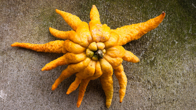There are plenty of odd and unique foods in the world that are still finding their footing in the United States. Better Health Magazine explains the cherimoya, which tastes like a creamy cross between a pineapple and a banana, and the jabuticaba, which looks like a plum and tastes like a grape, are among some of those you might encounter from time to time in the produce aisle. But one that might give you pause goes by the name Buddha's hand or fingered citron, as it is often called, and it's definitely a conversation starter.