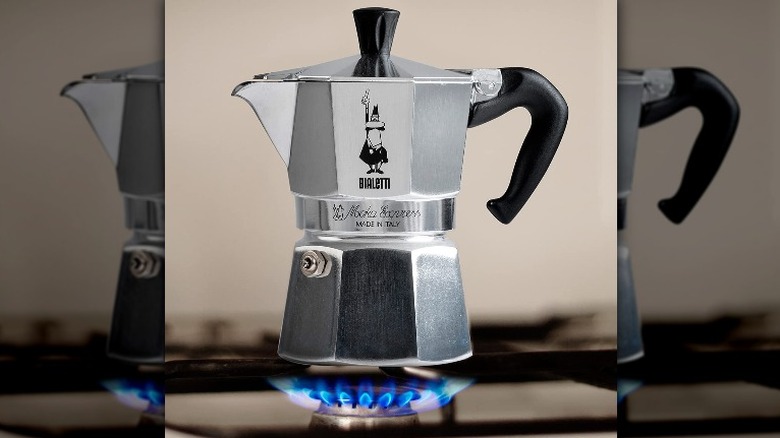 This Italian-made Moka pot is guaranteed to brew a good shot of espresso every time. Moka pots are a more accessible espresso option for many because of the gadget's low-tech design, portability, and affordability compared to other tabletop espresso makers. All you need to operate a Moka pot is a heat source; the steam and pressure produced by the water in the bottom of the pot will rise into the central chamber — where the coffee grounds are located. Then, the pressure continues to move the water through the top of the chamber to the receptacle where it can be poured into an awaiting mug, (via James Hoffman).
