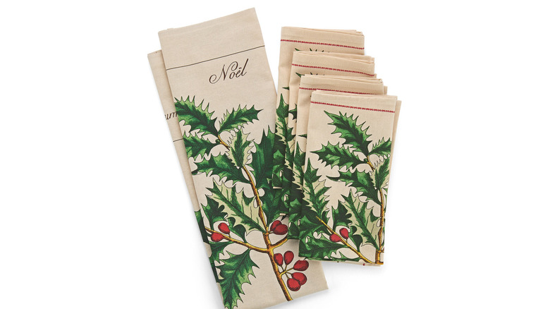Holly Tea Towel and Napkins Set from The Smithsonian's National Museum of Natural History