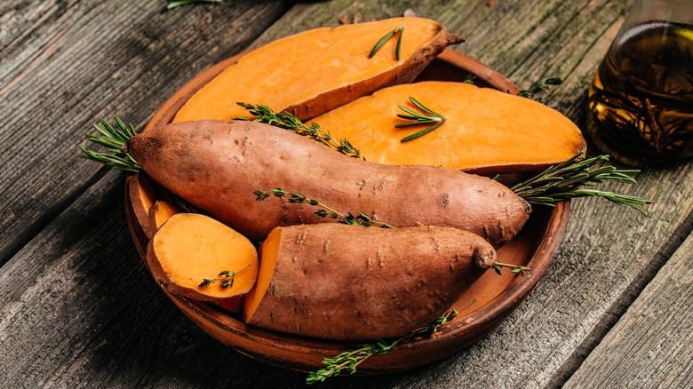 According to The Washington Post, the Beauregard comes with gorgeous dark orange flesh and contains a little more juice than other sweet potatoes, making them ideal for smashing up and incorporating into any dish. Sweet potatoes tend to have a firm or soft texture; the firm kind keeps shape after they cook, whereas the softer type, like the Beauregard, will become more delicate and creamy.