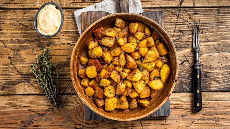 Part of the reason why this tuber has such worldwide fame is because of its versatility. According to National Geographic, it's one of the top global food crops, based on production quantity. A root vegetable of that stature deserves to be accompanied by a seasoning of a similar ranking; anything less would be a disservice. Like potatoes, za'atar reigns in a standing all its own — using this kitchen staple instantly upgrades your dinner game. Often referred to as the "king of herbs," per Martha Stewart, za'atar makes a royal match with spuds.