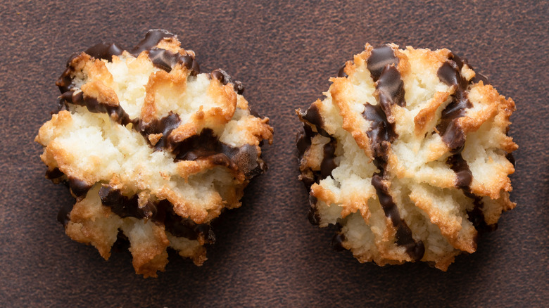 A macaroon, by contrast, is a fairly simple drop cookie, according to Ina Garten's recipe from Food Network. Its ingredients are pretty basic — just shredded coconut, sweetened condensed milk, vanilla (the good stuff, of course), egg whites, and a little salt. While the recipe does call for beating the egg whites and folding them into your other ingredients, macaroons are pretty foolproof. As long as you don't forget them in the oven, they'll turn out just fine. They're a far cry from fiddly macarons.