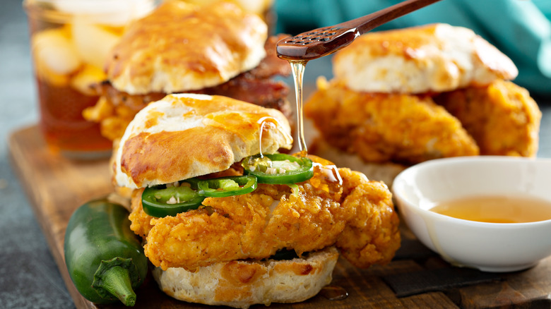 While there have been many modifications to the original Southern biscuit (which was the size of a cat's head, per Texas Chicken and Burgers), the traditional recipe remains the same. Flour, fat, salt, and leavening agents like baking powder are the major players in a delicious biscuit. The biscuit can be dressed up into a decadent breakfast sandwich with eggs and bacon or served as the base for sausage gravy. There are plenty of folks who keep it simple and just stick to butter and a schmear of jam, too.